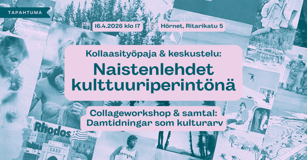 Tapahtumavinkki: Naistenlehdet kulttuuri-perintönä Työpaja & keskustelutilaisuus Helsingissä torstaina 16.4.2026 Tervetuloa keskustelemaan naistenlehdistä – ja askartelemaan!…