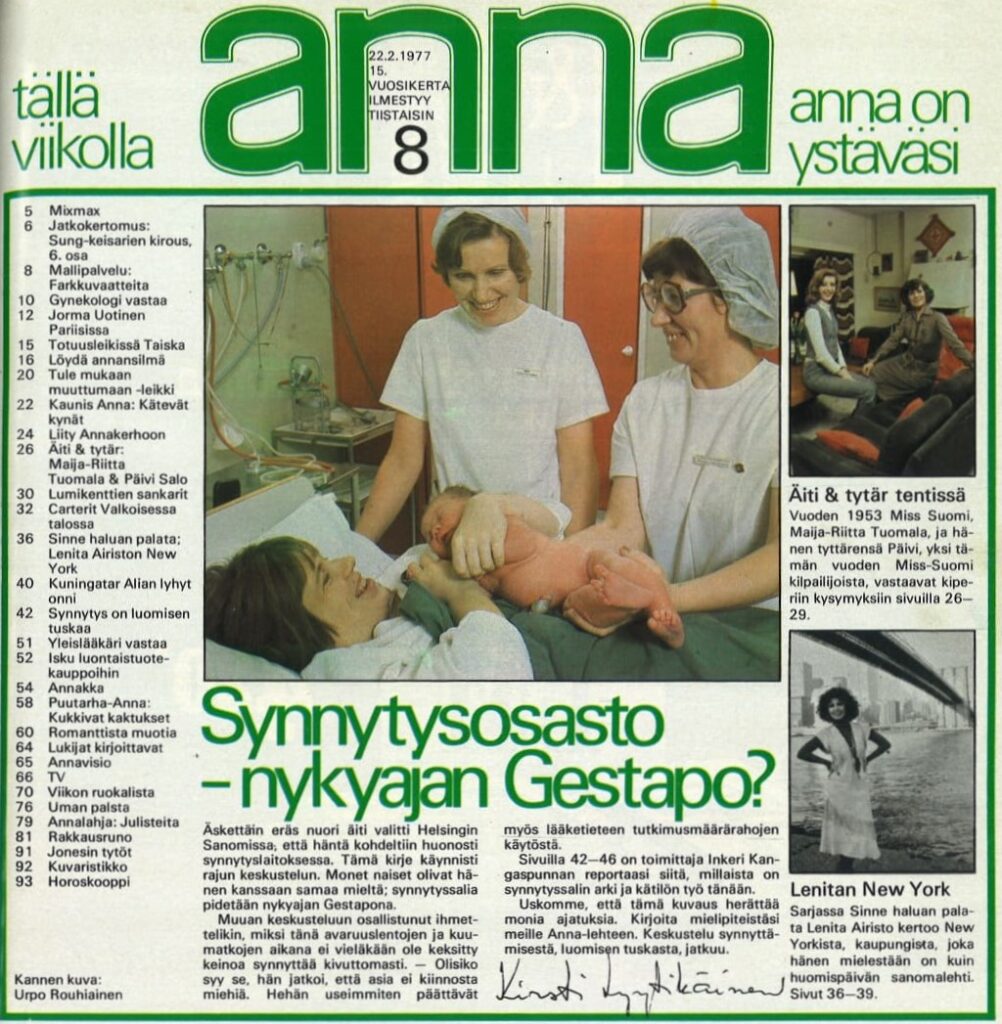 Käsittelen tässä postauksessa, miten vuodenvaihteen 1976-1977 synnytyskipukeskustelu sai alkunsa, keitä siihen osallistui ja miten eri kirjoittajat ottivat kysymykseen kantaa. En sisällytä postaukseen koko 1970-luvun lehtikirjoittelua enkä huomioi aiheeseen muita läheisesti liittyneitä teemoja, kuten isien osallistumista synnytyksiin. Niihin voi tutustua paremmin Historiallisen Aikakauskirjan artikkelissa.