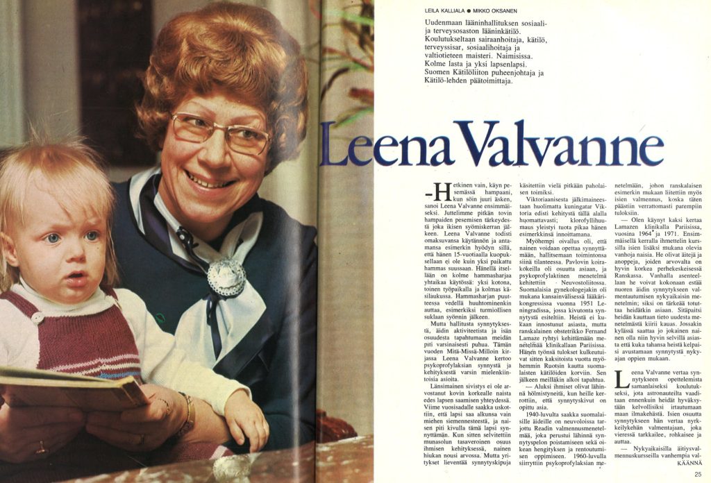 Leena Valvanne oli lehtien haastattelema asiantuntija, joka otti mielellään osaa myös mielipidekirjoitteluun sanoma- ja aikakauslehdissä. Lehtianalyysini osoittaa, että hän sai 1970-luvun naistenlehdissä paljon tilaa. Psykoprofylaksiasta saatettiin kirjoittaa kriittiseenkin sävyyn, mutta Valvannetta ja hänen näkemyksiään ei juuri haastettu.