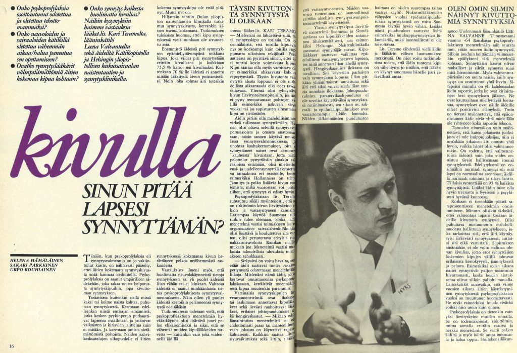 Synnytyskipukeskustelu naistenlehdissä 1976-1977