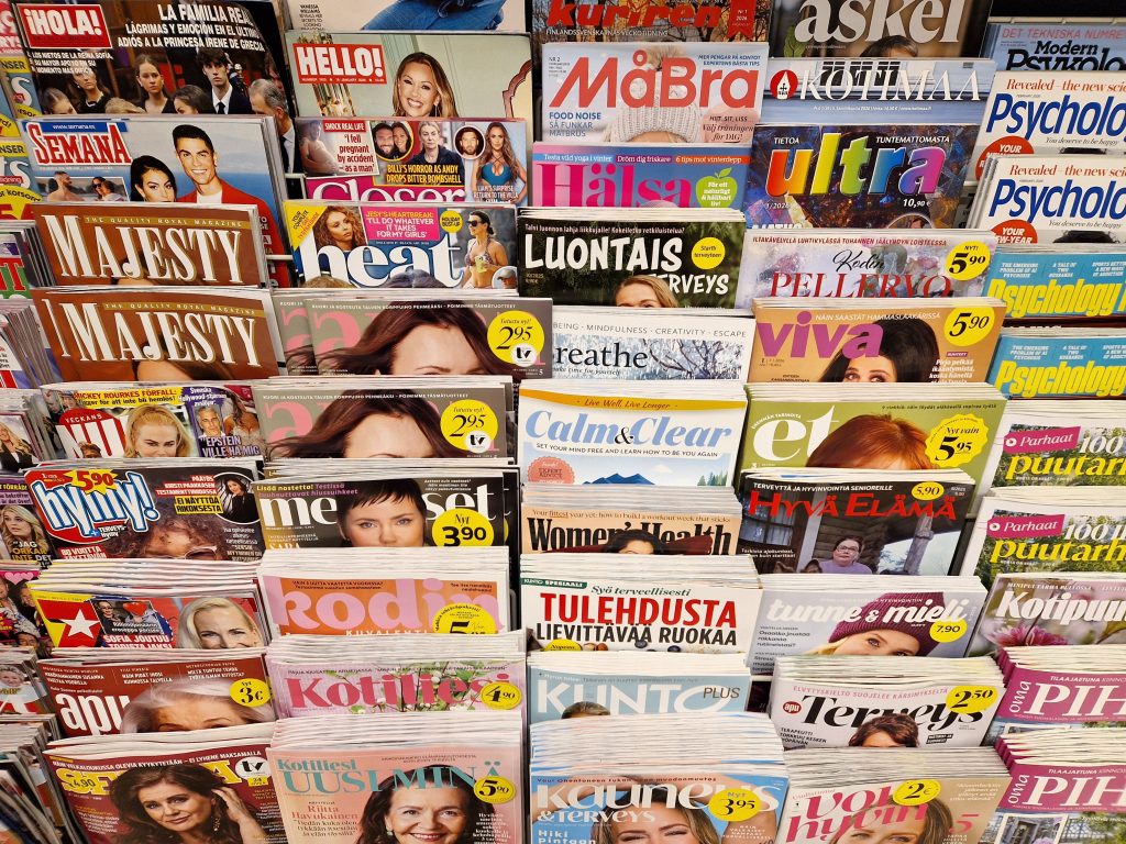 - Eri aikakauslehtigenret: yleisaikakauslehdet, naistenlehdet, miestenlehdet, sisustuslehdet, järjestölehdet, harrastelehdet, lasten- ja nuortenlehdet.